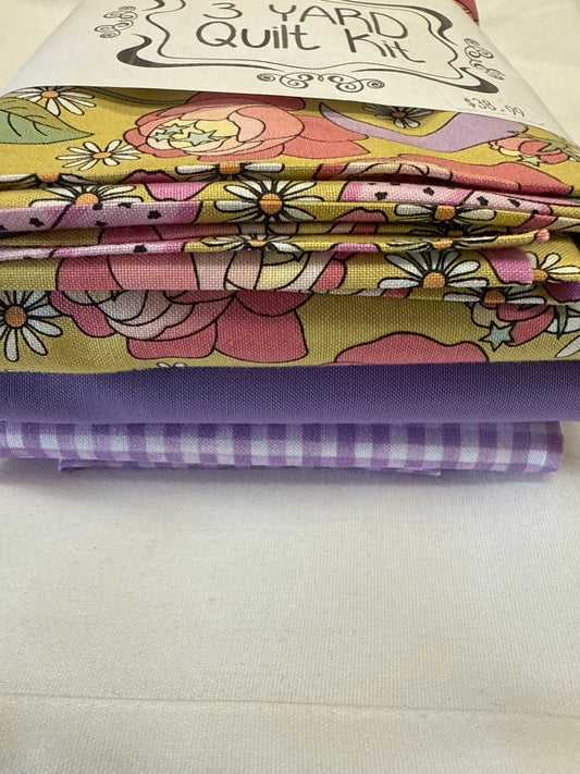 3 yard quilt kit-pink and purple floral green background
