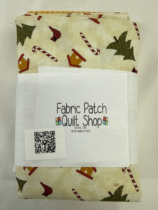 3 yard quilt kit Christmas green, gold, cream background snowman