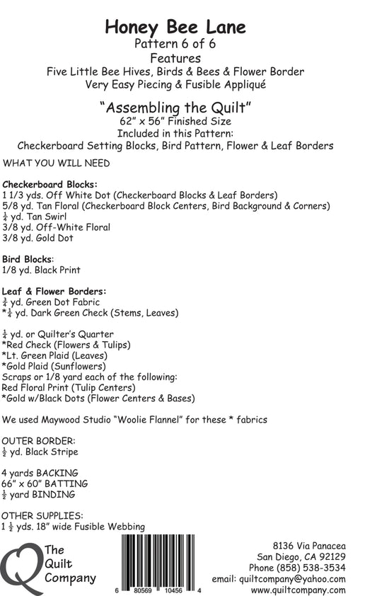 Honey Bee Lane Honey Bee Lane 6- Assembling the Quilt # HBL106