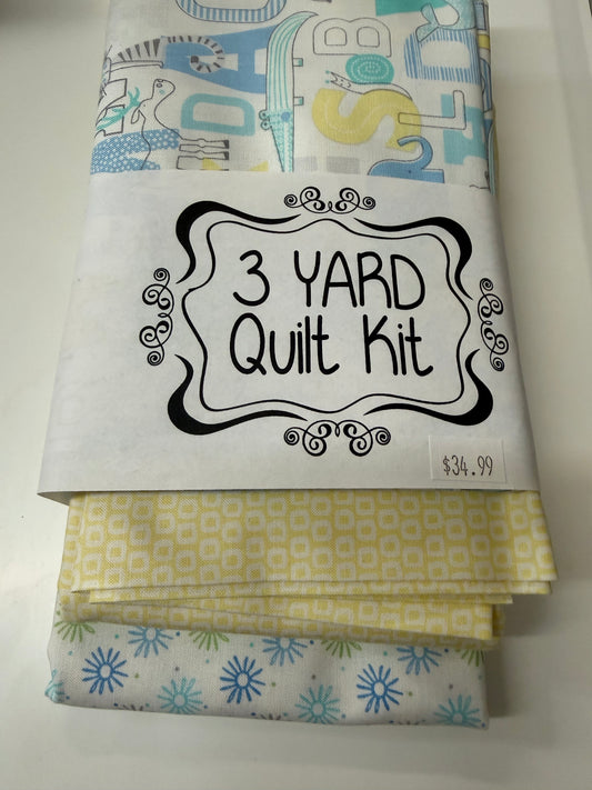 3 yard quilt kit - White background, playful alphabet in pink,green and yellow