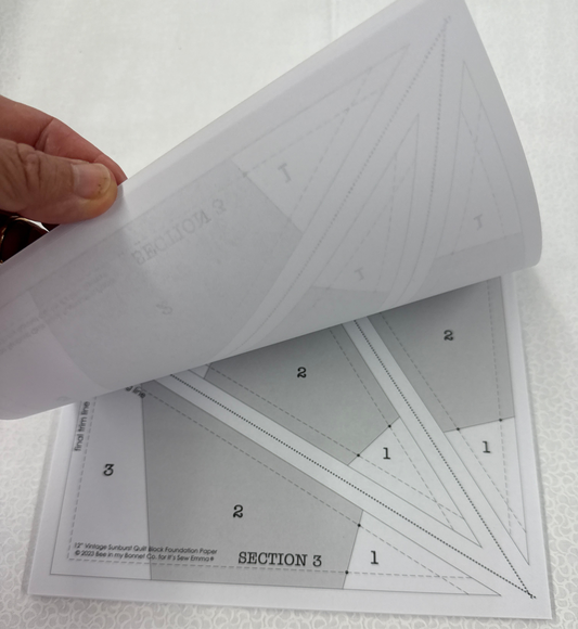 12” Vintage Sunburst Quilt Block Foundation Paper