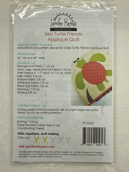 Sea Turtle Friends Applique Quilt Sewing Pattern
