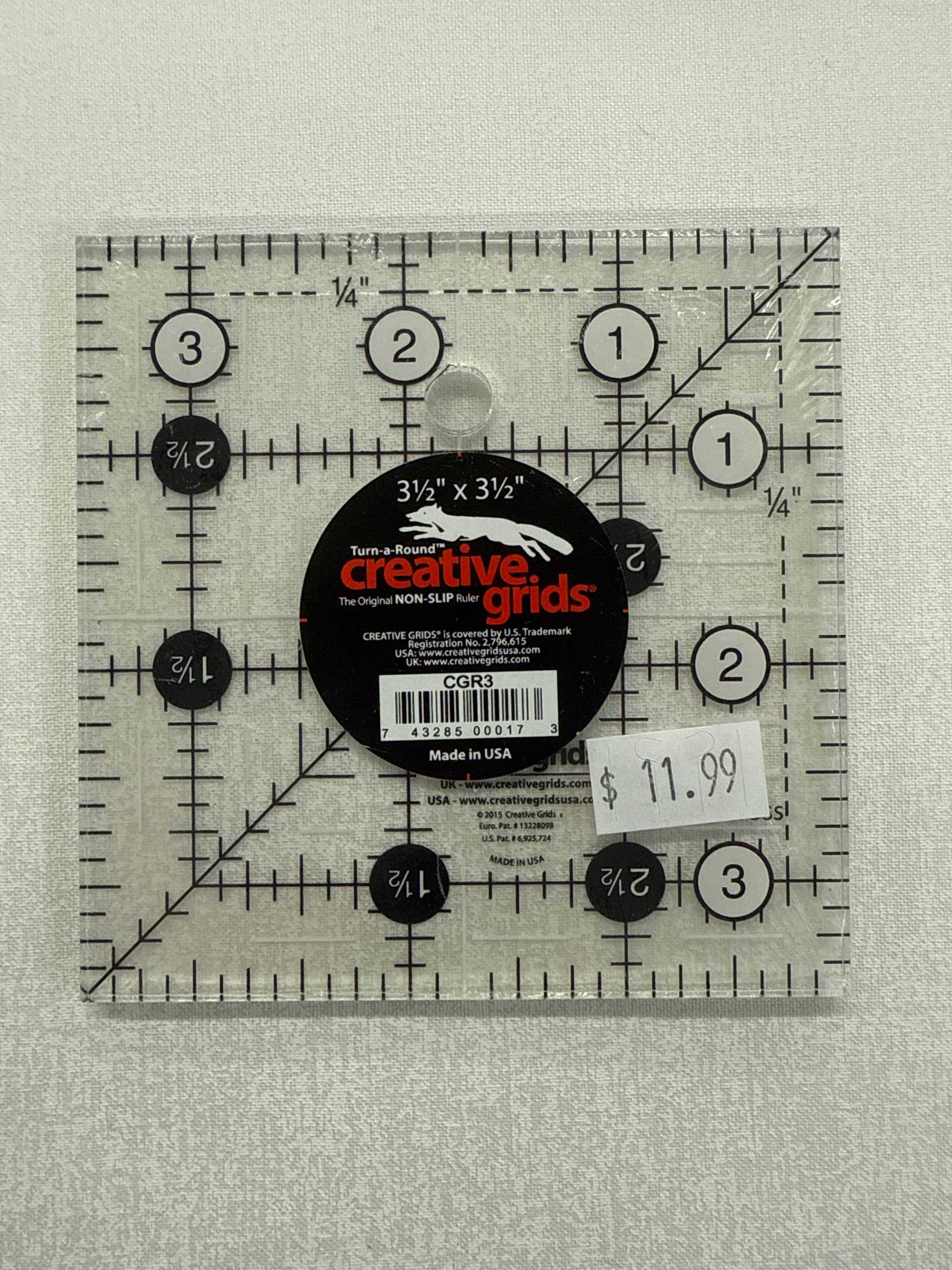 Measure with creativity using our Creative grids 3 1/2 x 3 1/2 ruler. This versatile tool allows you to precisely measure and cut fabric, paper, and more. Say goodbye to wonky lines and hello to perfect cuts every time. Get your creative juices flowing with our ruler!
