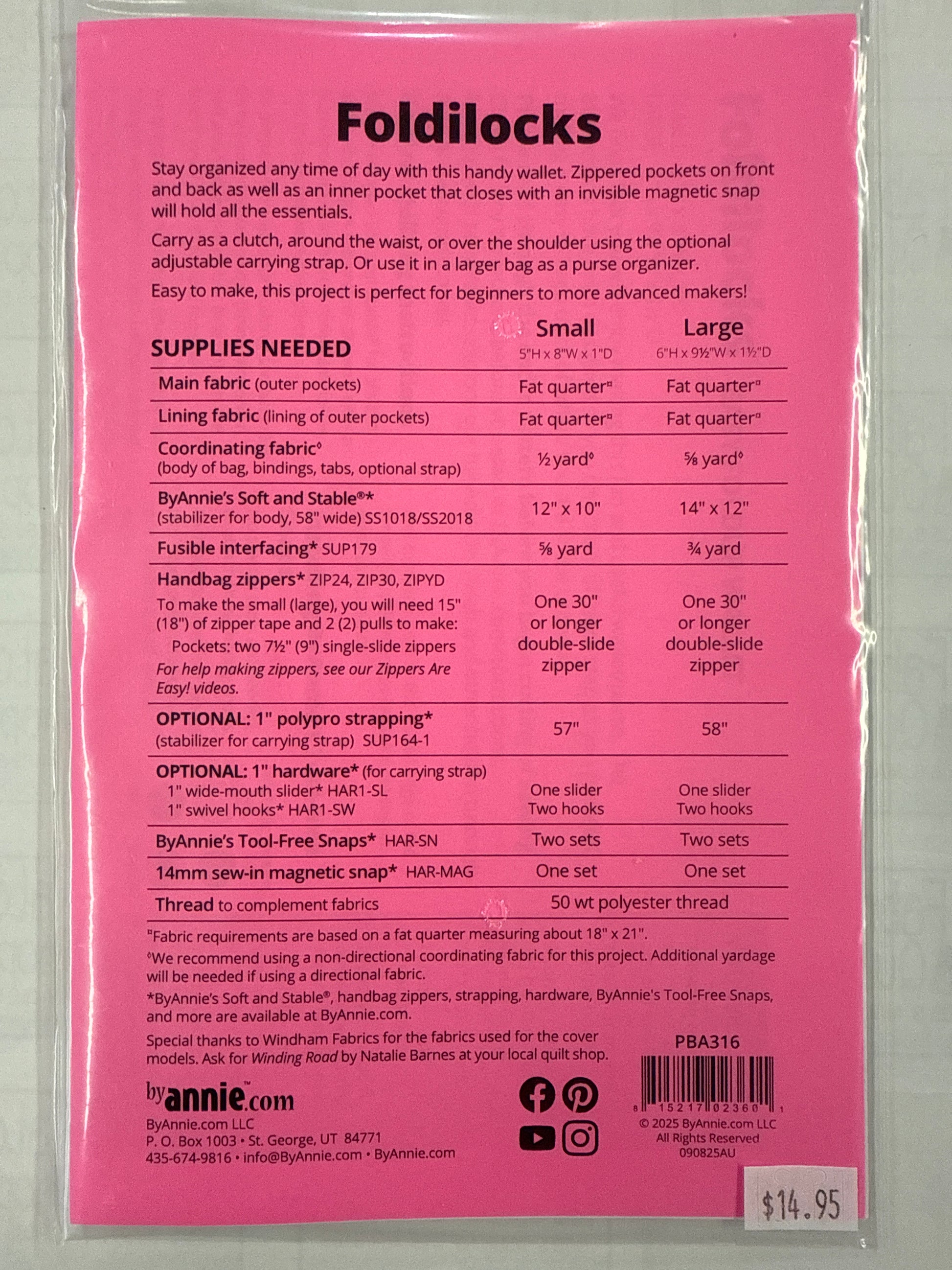Introducing Foldilocks, the easy fold up wallet by ByAnnie. With our unique fold-the-locks pattern, your wallet will stay securely closed to protect your belongings. No more worries of losing cards or cash! Convenient and stylish, Foldilocks is the perfect solution for everyday use.