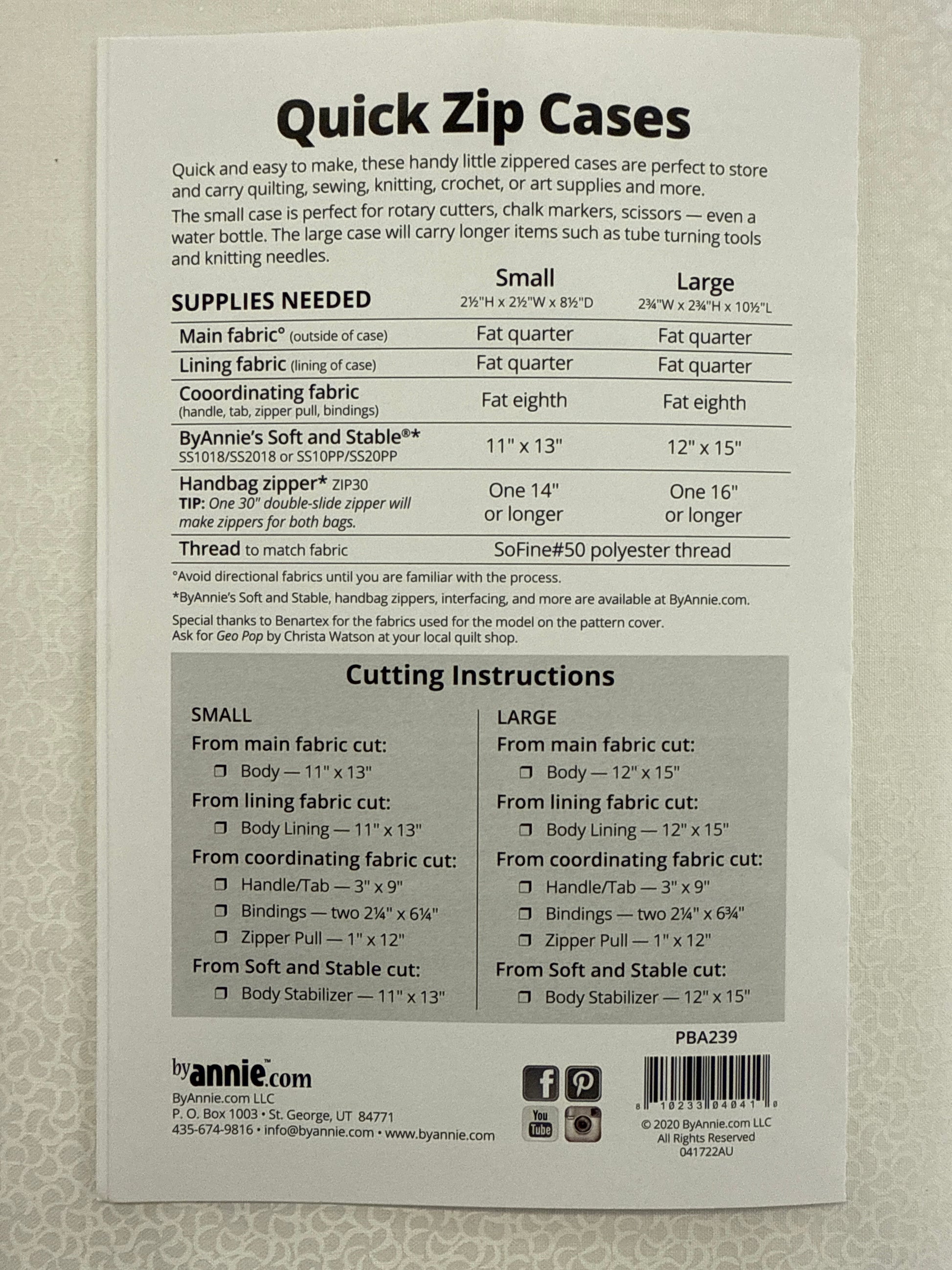 "Get organized with Quick Zip Cases! This fun and easy-to-use bag pattern by Byannie will keep your belongings secure with its quick zip feature. Perfect for on-the-go storage, never lose your essentials again!"