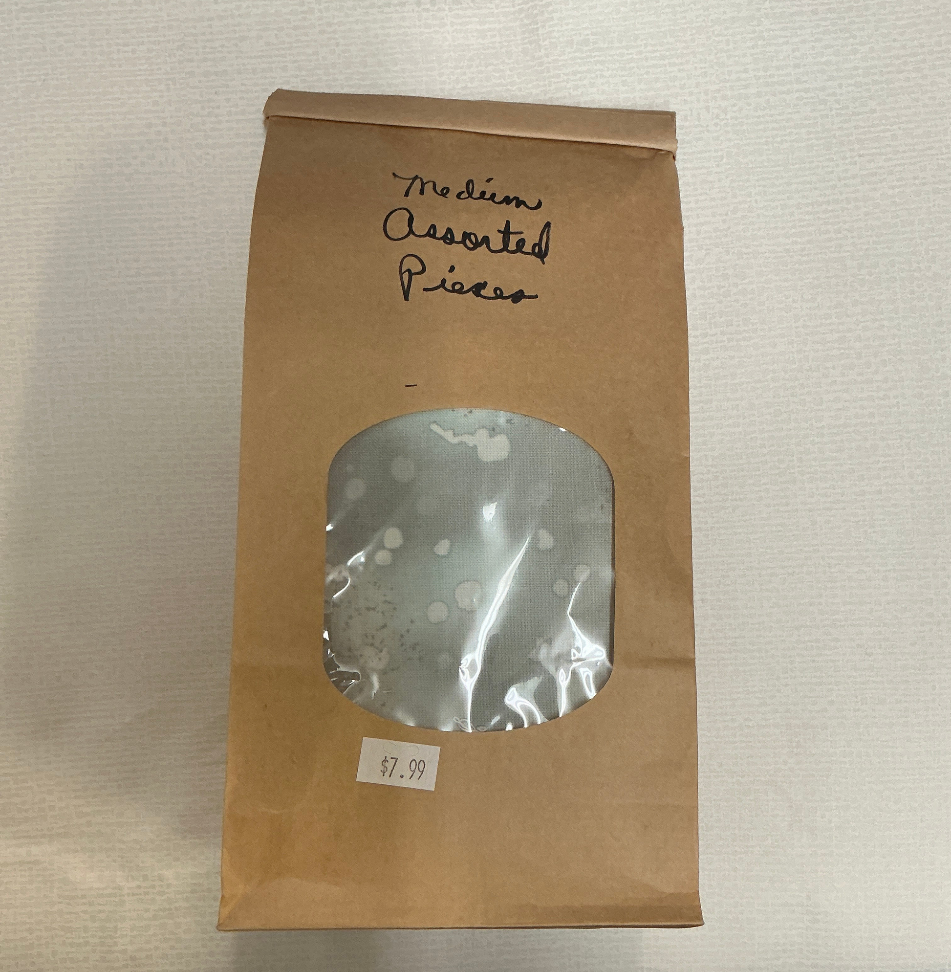 These Scrap bags contain assorted pieces of high-quality materials. Perfect for arts and crafts projects, these bags offer endless possibilities for creative expression. Each bag is filled with a variety of colors and textures, providing a unique and diverse selection to choose from. Let your imagination run wild with these versatile Scrap bags.